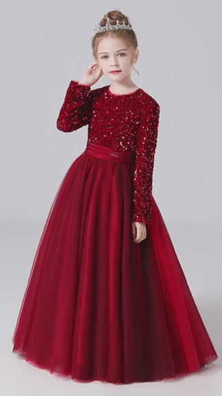 Flower Girl Dress Wedding Bridesmaid Sequins Tulle Puffy Skirt Girls Birthday Party Pageant Gown Floor Length