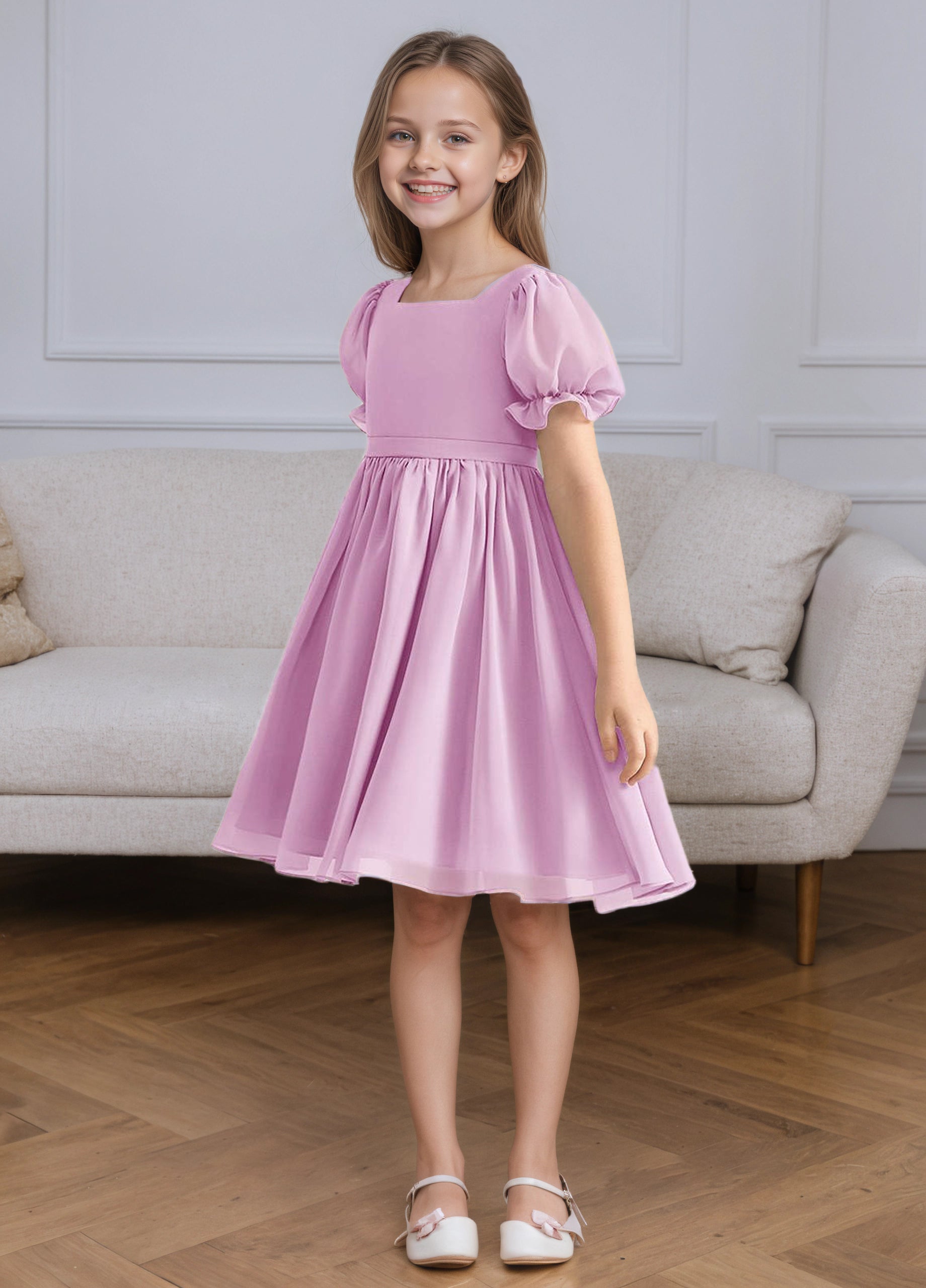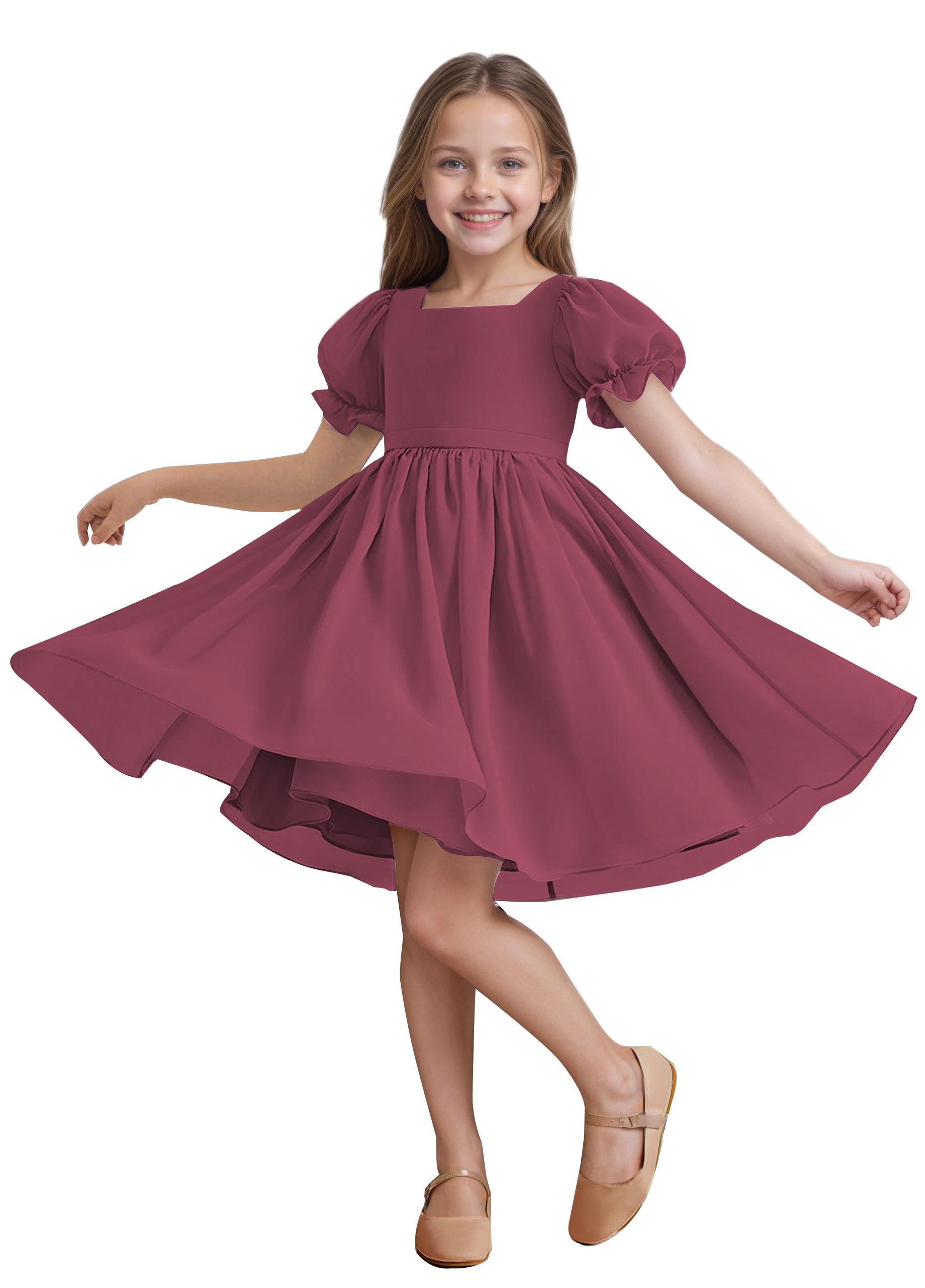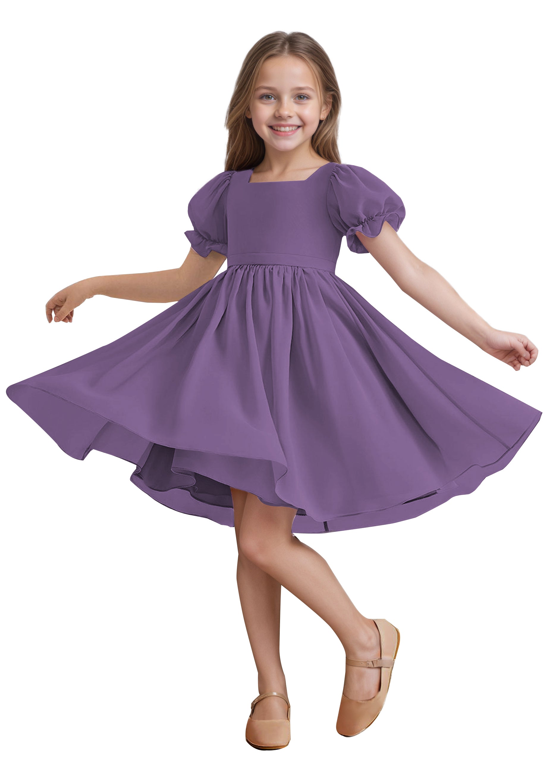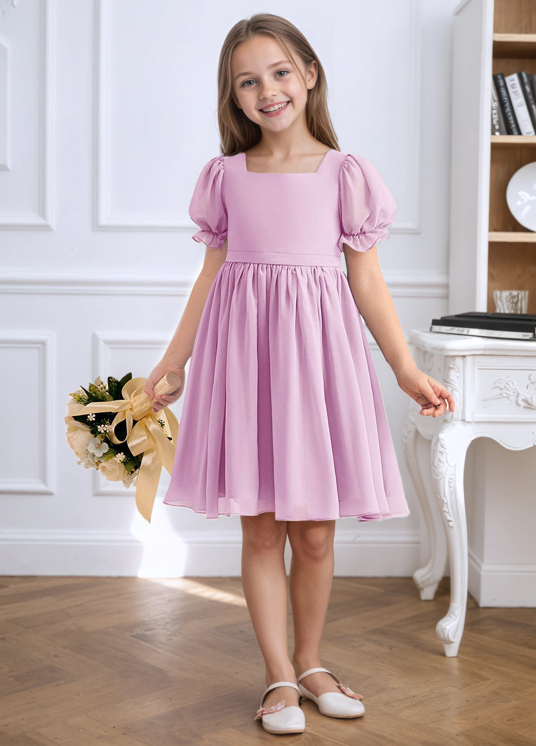 Chiffon Short Sleeves Flower Girl Dresses Knee Length Junior Bridesmaid Dresses for 4-16 650C