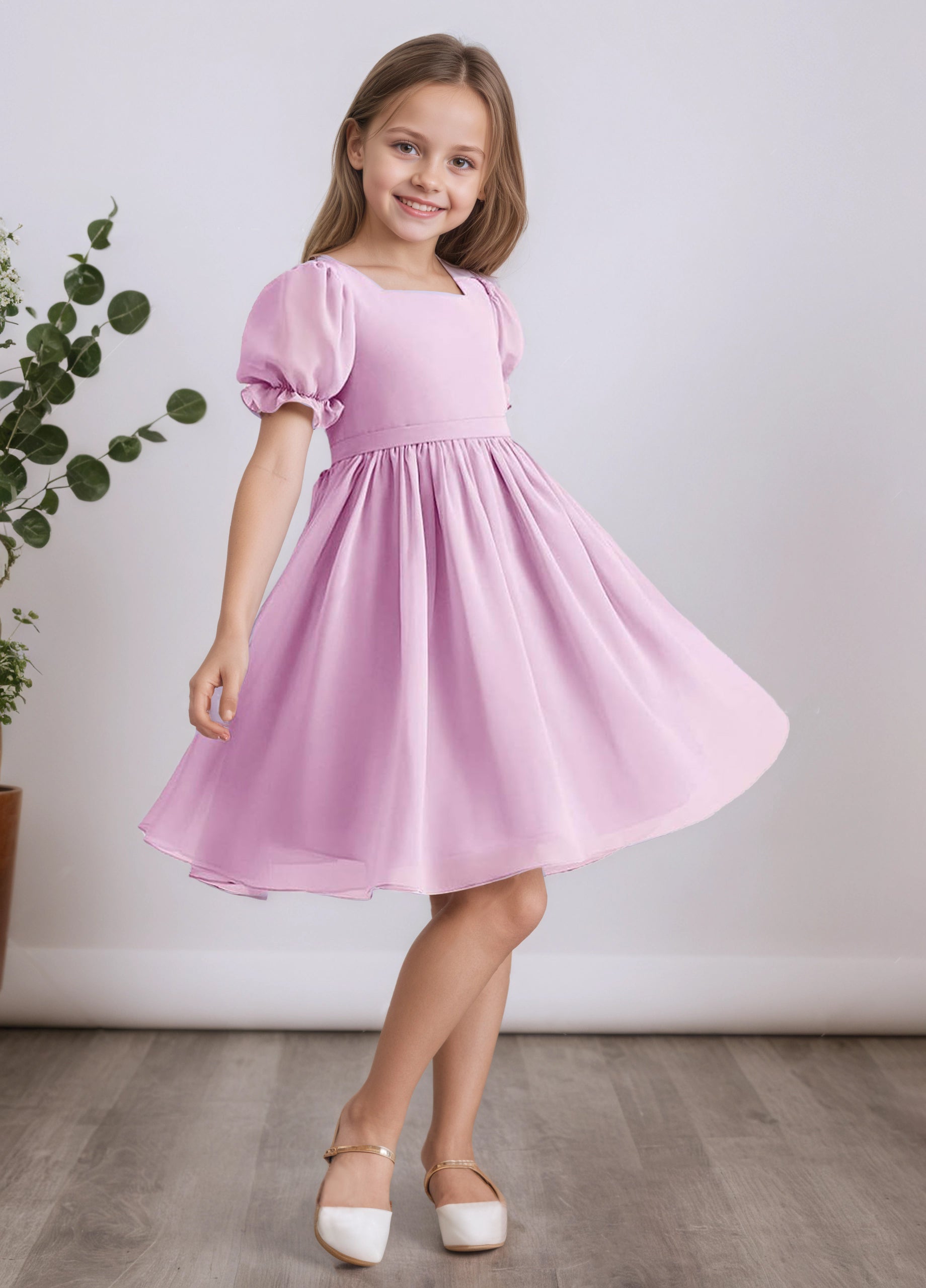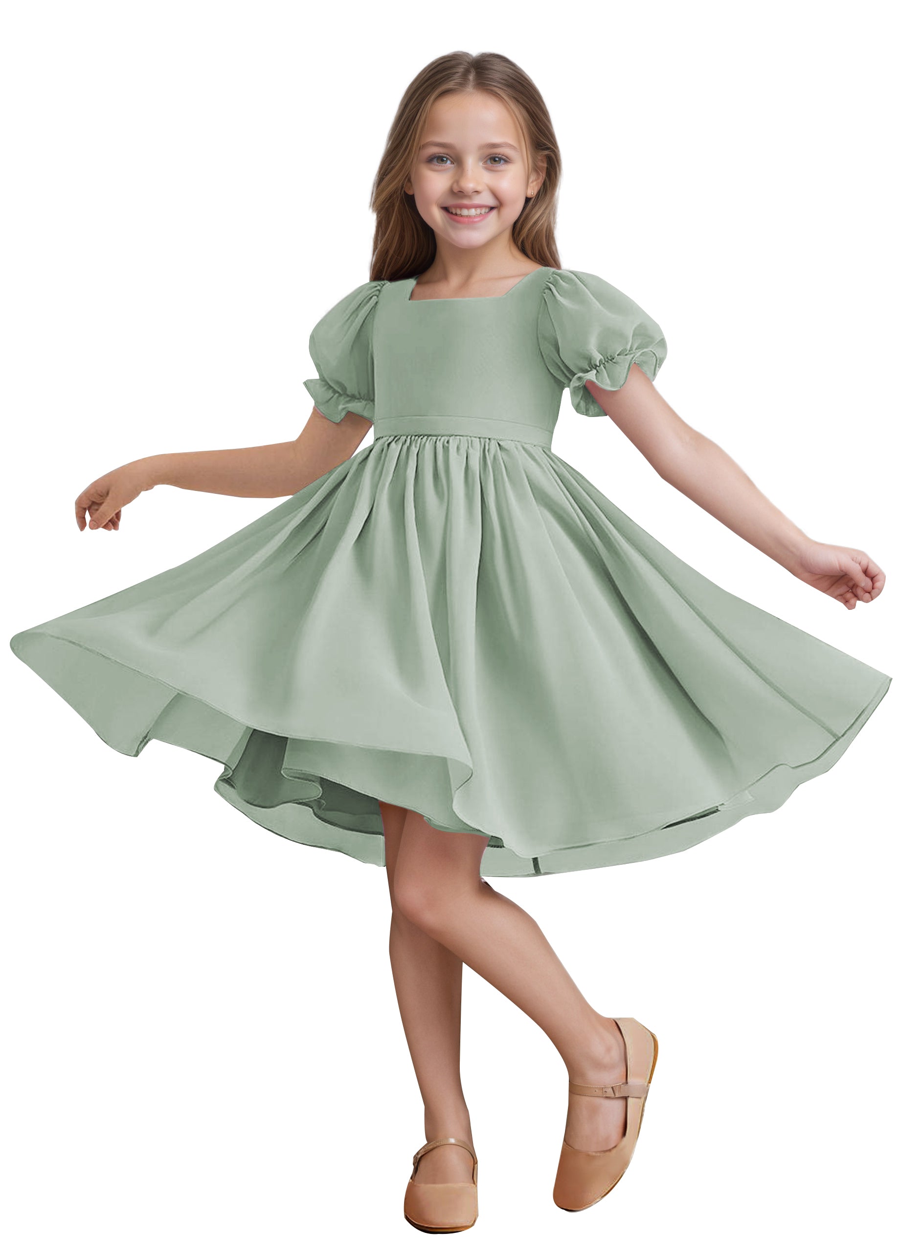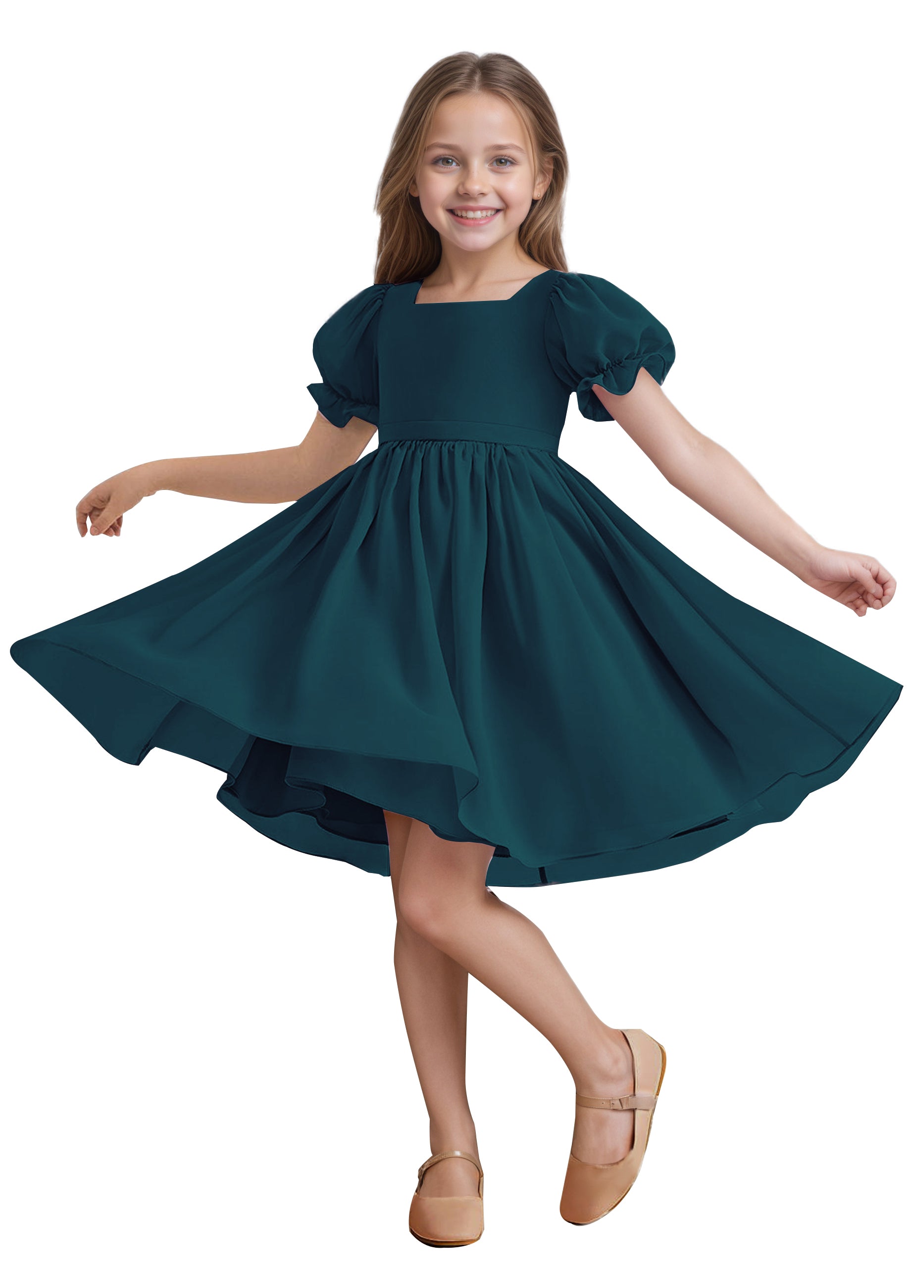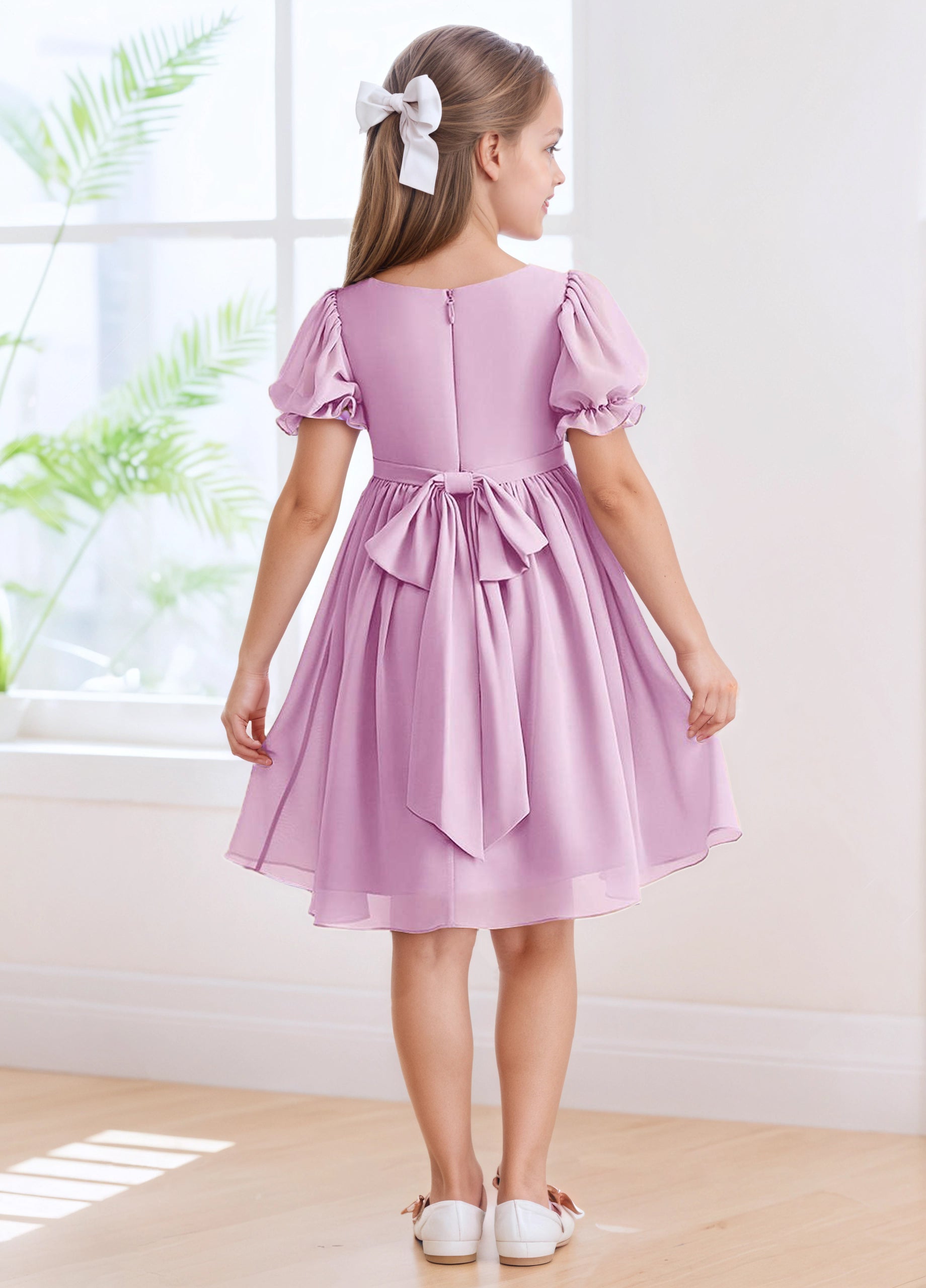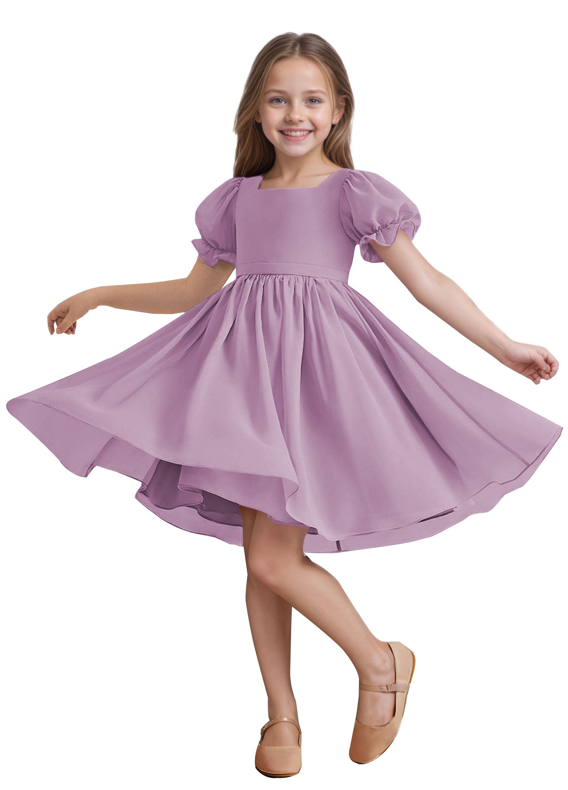 Chiffon Short Sleeves Flower Girl Dresses Knee Length Junior Bridesmaid Dresses for 4-16 650C