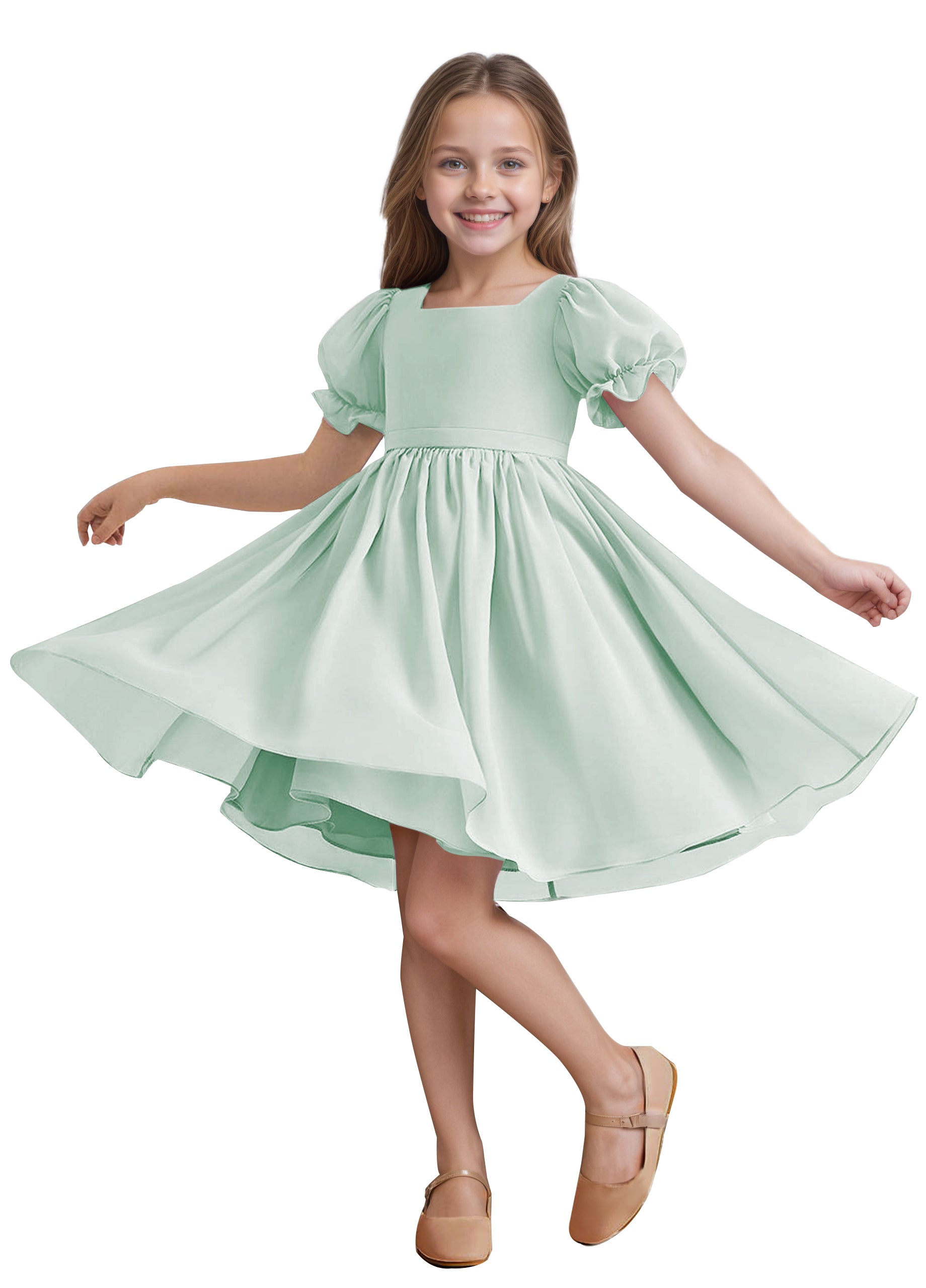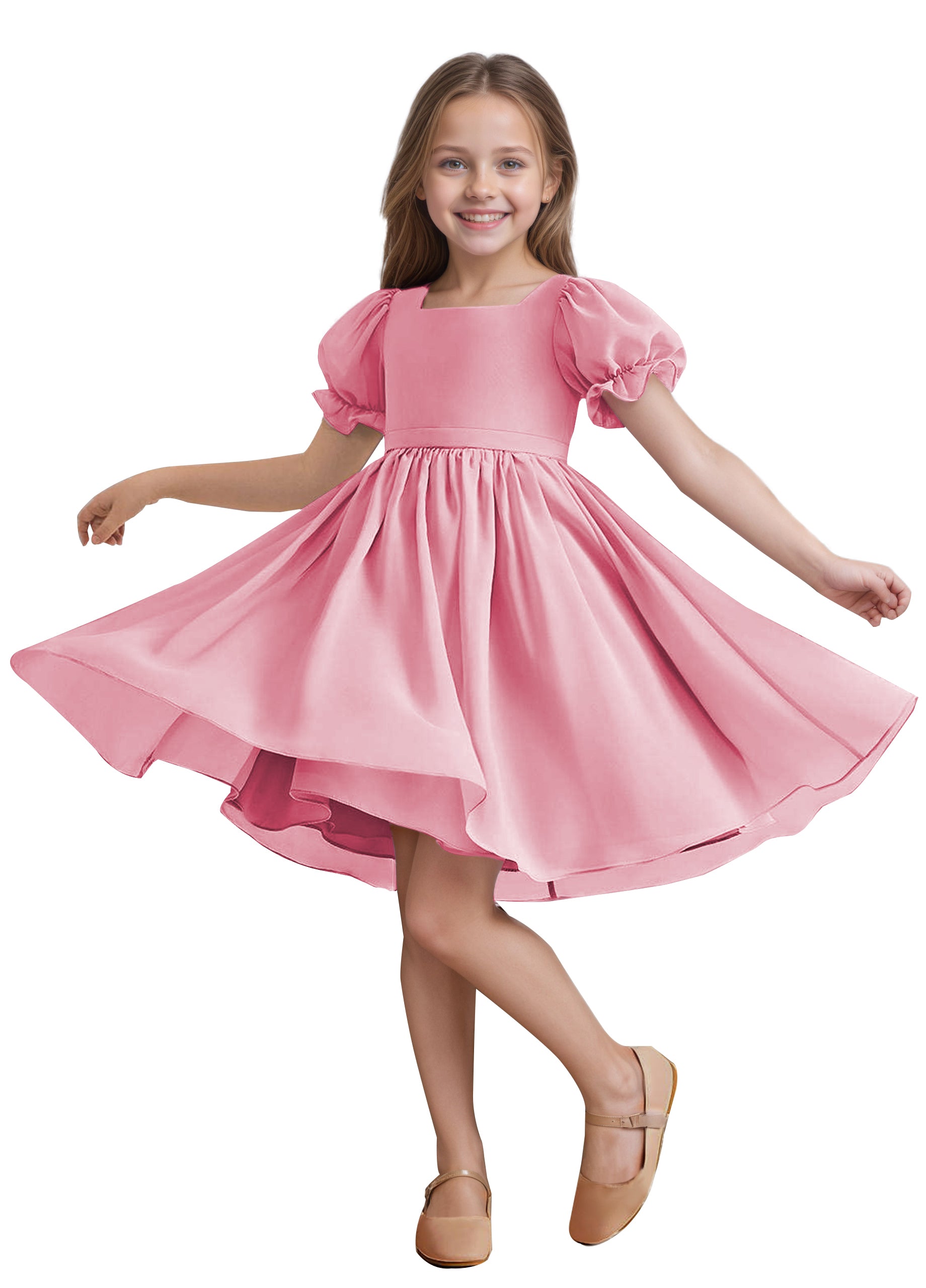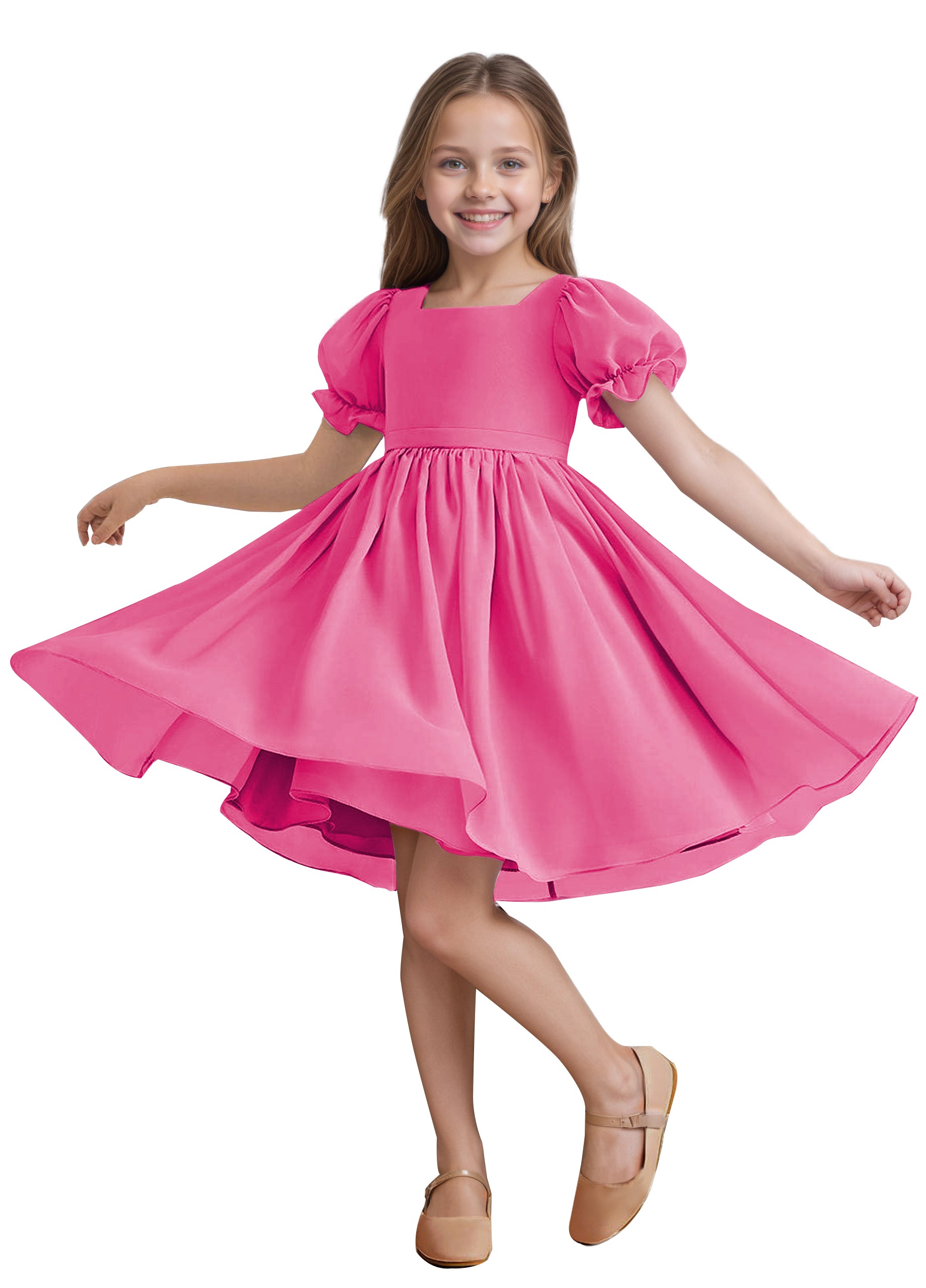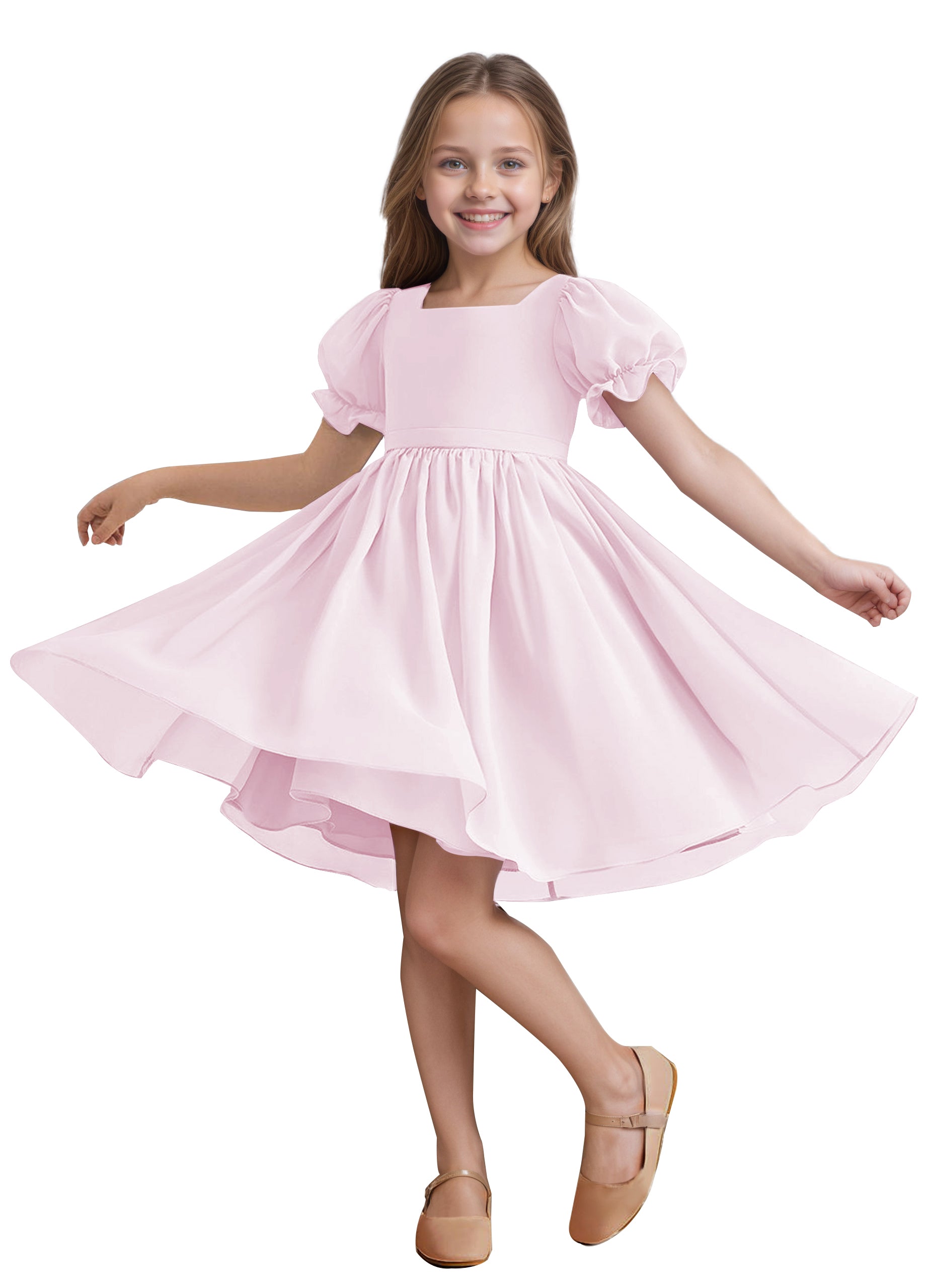Chiffon Short Sleeves Flower Girl Dresses Knee Length Junior Bridesmaid Dresses for 4-16 650C