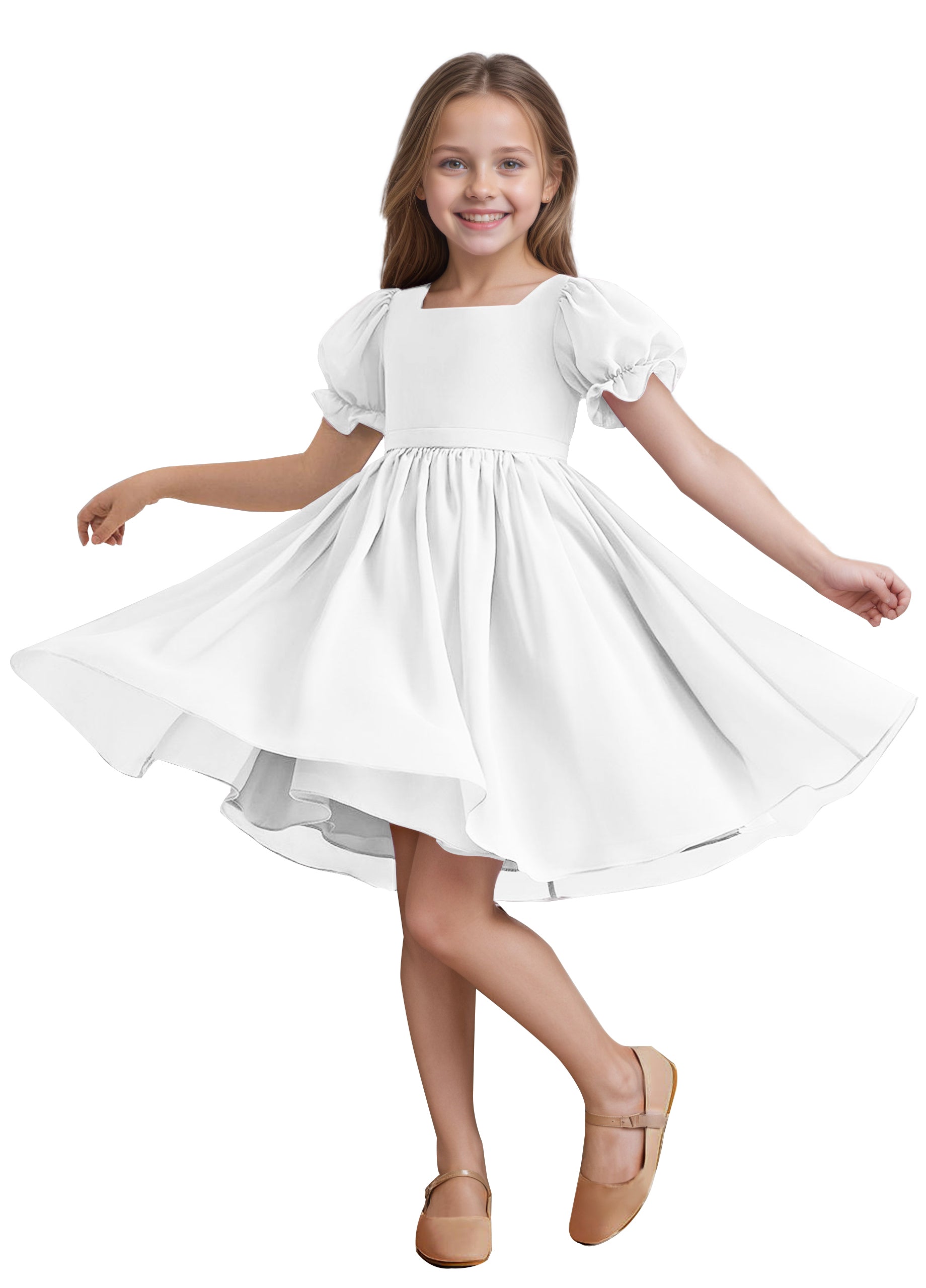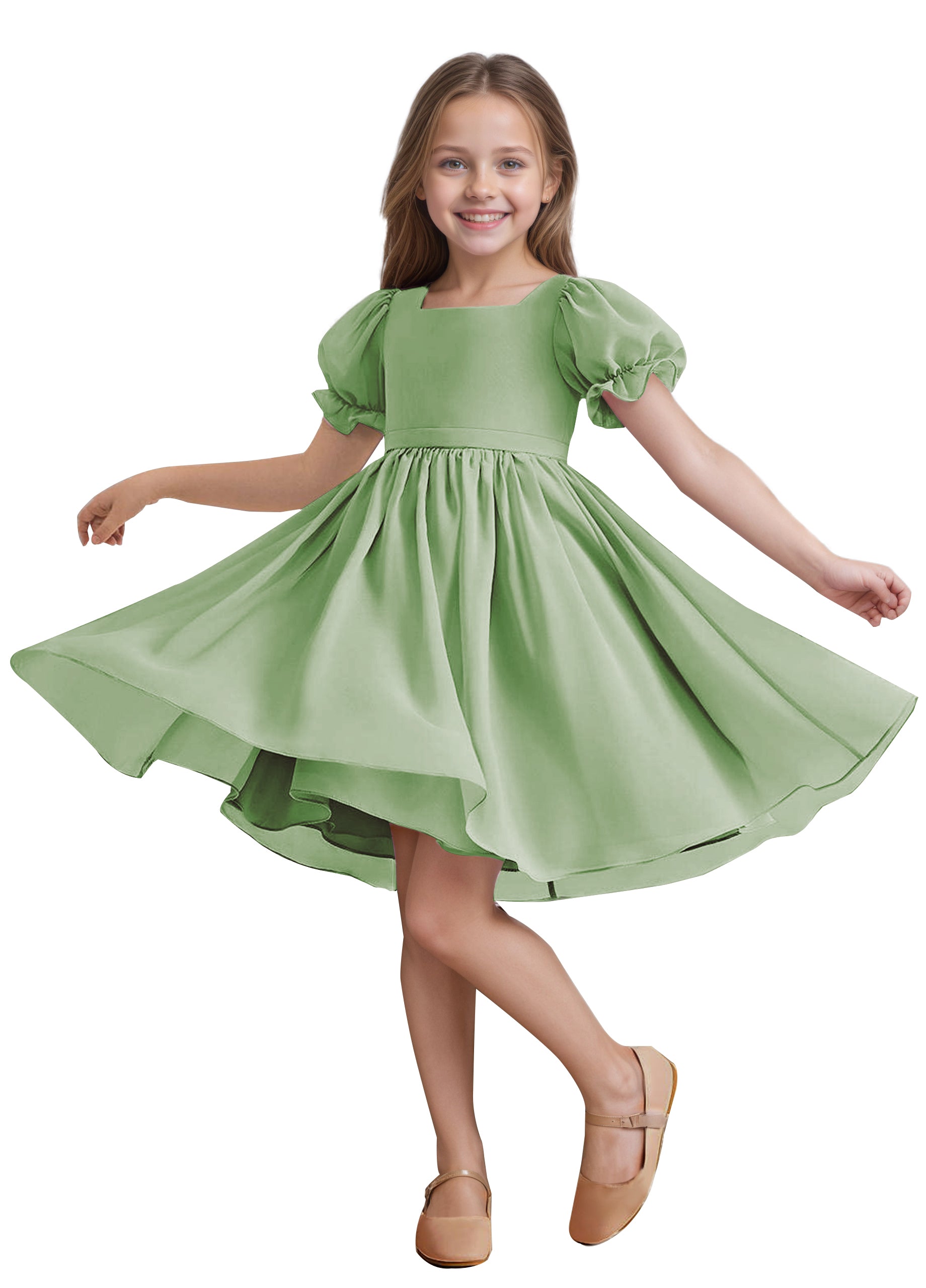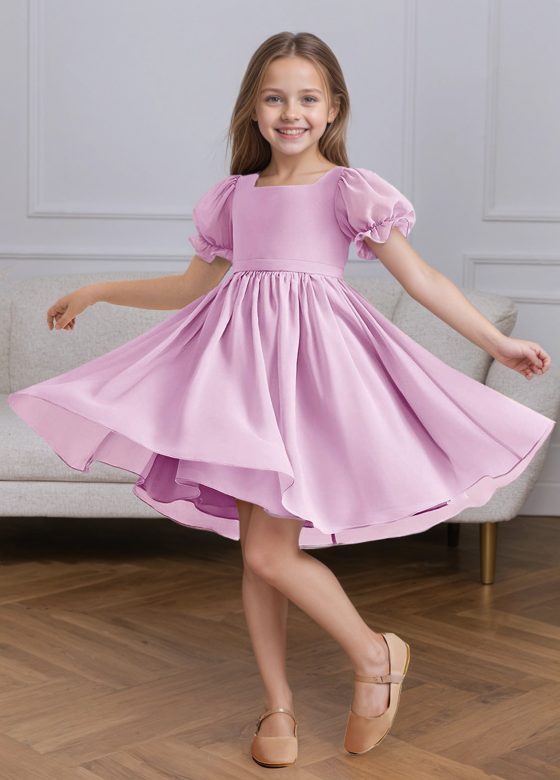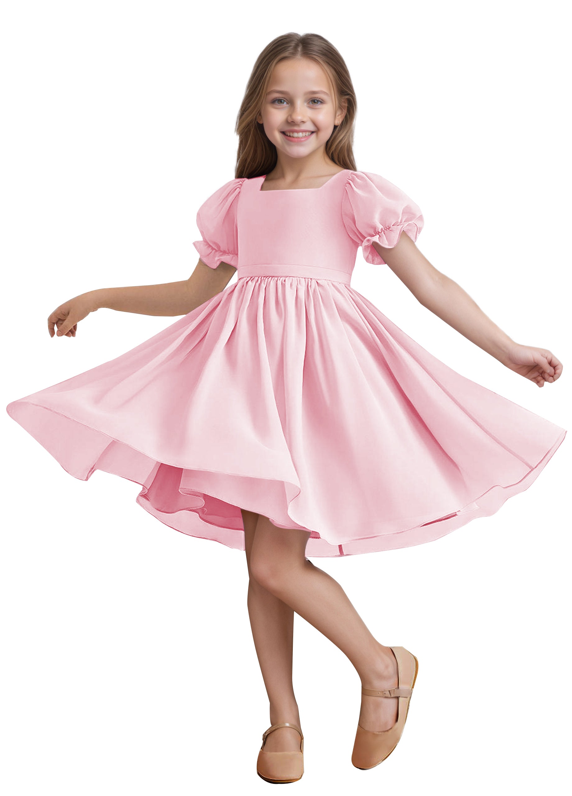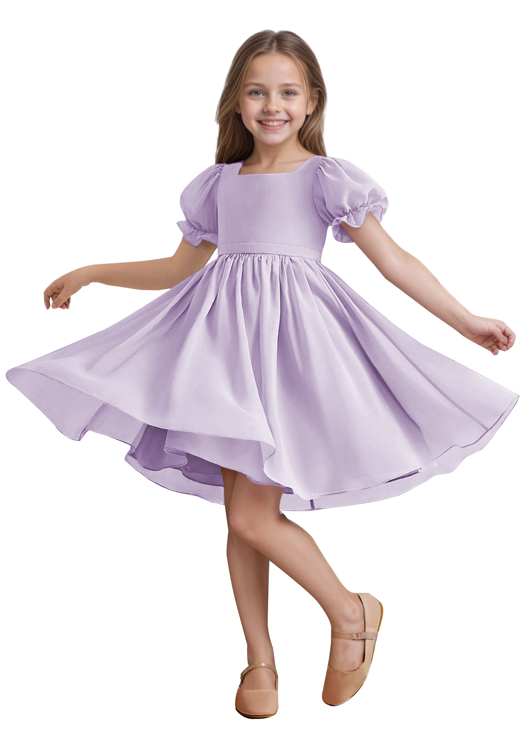 Chiffon Short Sleeves Flower Girl Dresses Knee Length Junior Bridesmaid Dresses for 4-16 650C