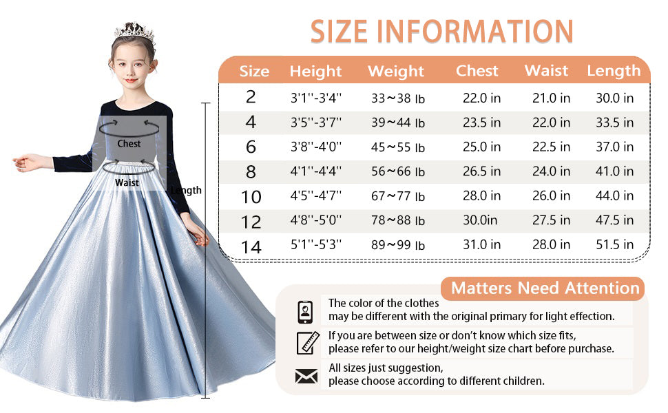 We provide customized dresses,if you are between sizes or do not know which size fits,please provide your girl's height, weight, waist and bust size to us, we can make a fitted dress for your girl.