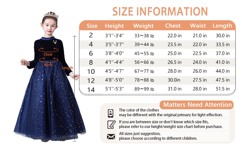 We provide customized dresses,if you are between sizes or do not know which size fits,please provide your girl's height, weight, waist and bust size to us, we can make a fitted dress for your girl.