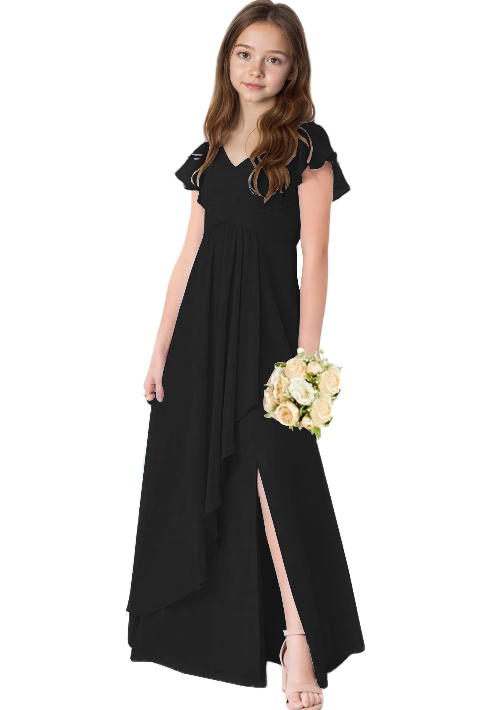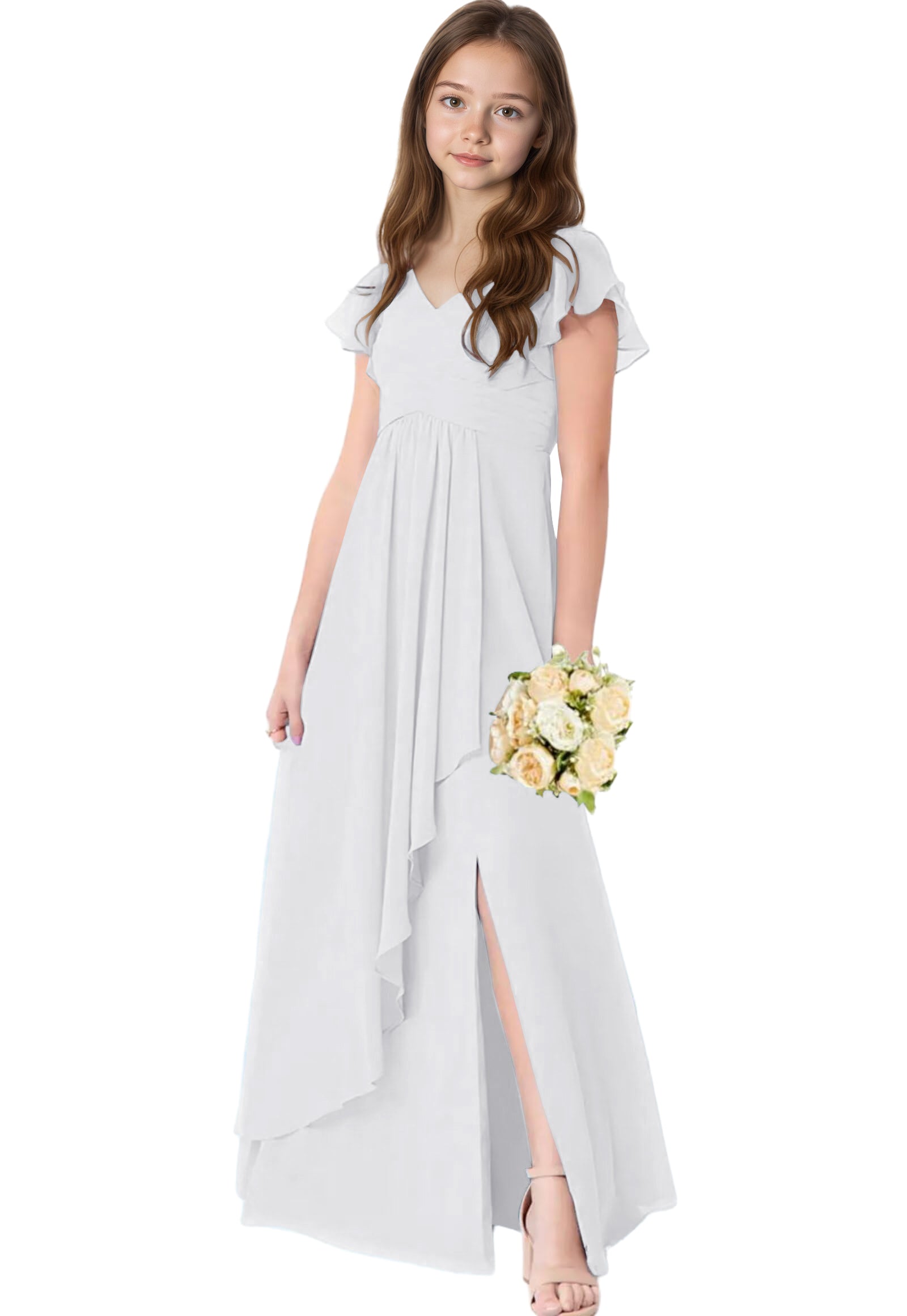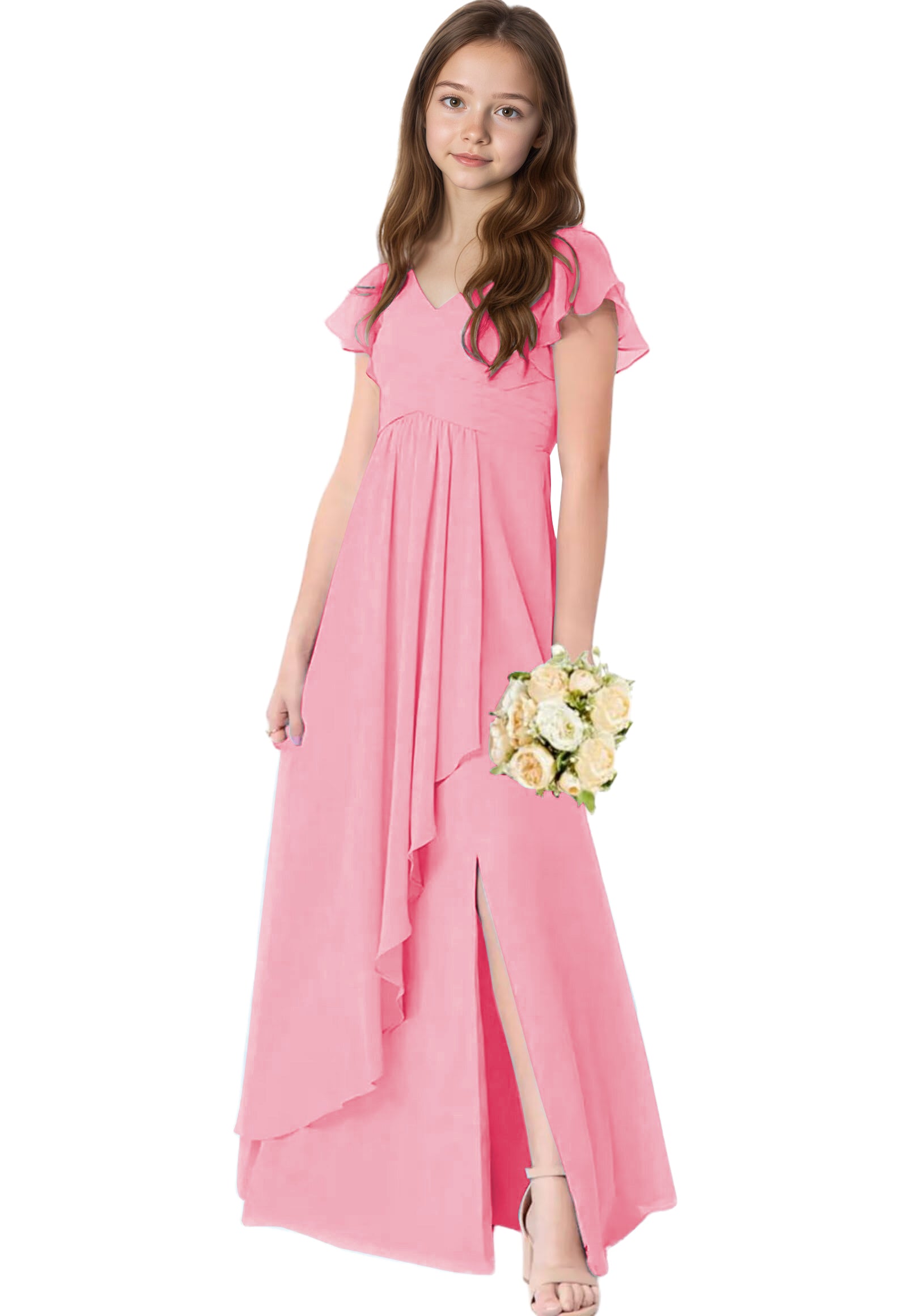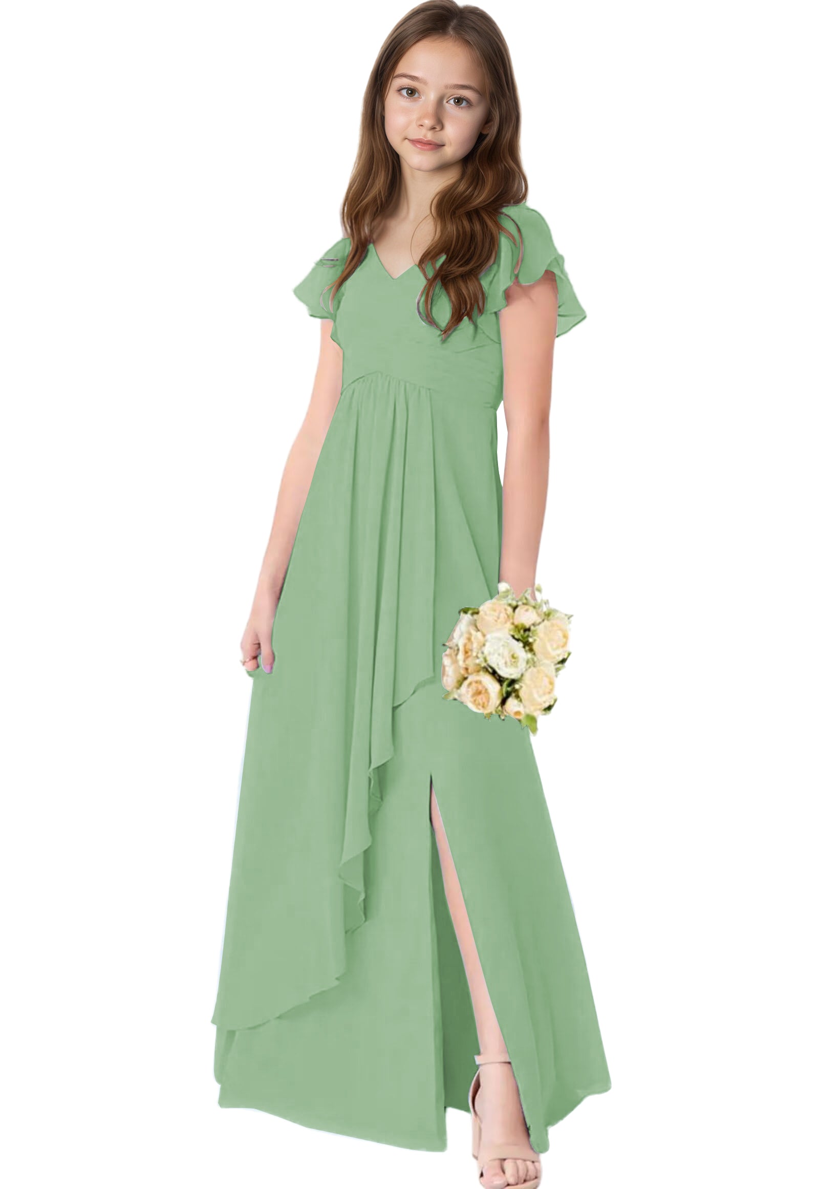 dideyttawl Chiffon Junior Bridesmaid Dresses V Neck Ruffle Sleeves Chiffon Pleated Flowy Flower Girls Dress or 4-16 2506