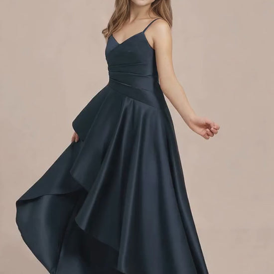 dideyttawl High Low Junior Bridesmaid Dress V-Neck Silk Satin Flower Girl Dress Sleeveless Formal Special Occasion Dress for Wedding 2523