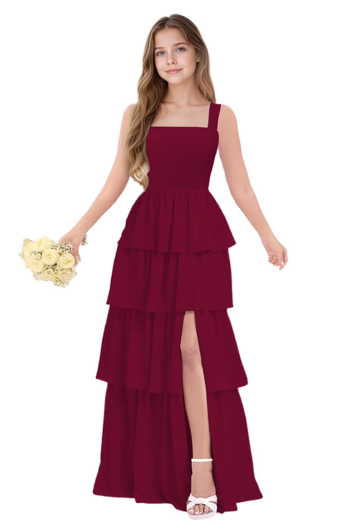 dideyttawl Junior Bridesmaid Dress Spaghetti Strap Square Neck Layered Chiffon A-Line Flower Girl Dress with Slit 2509