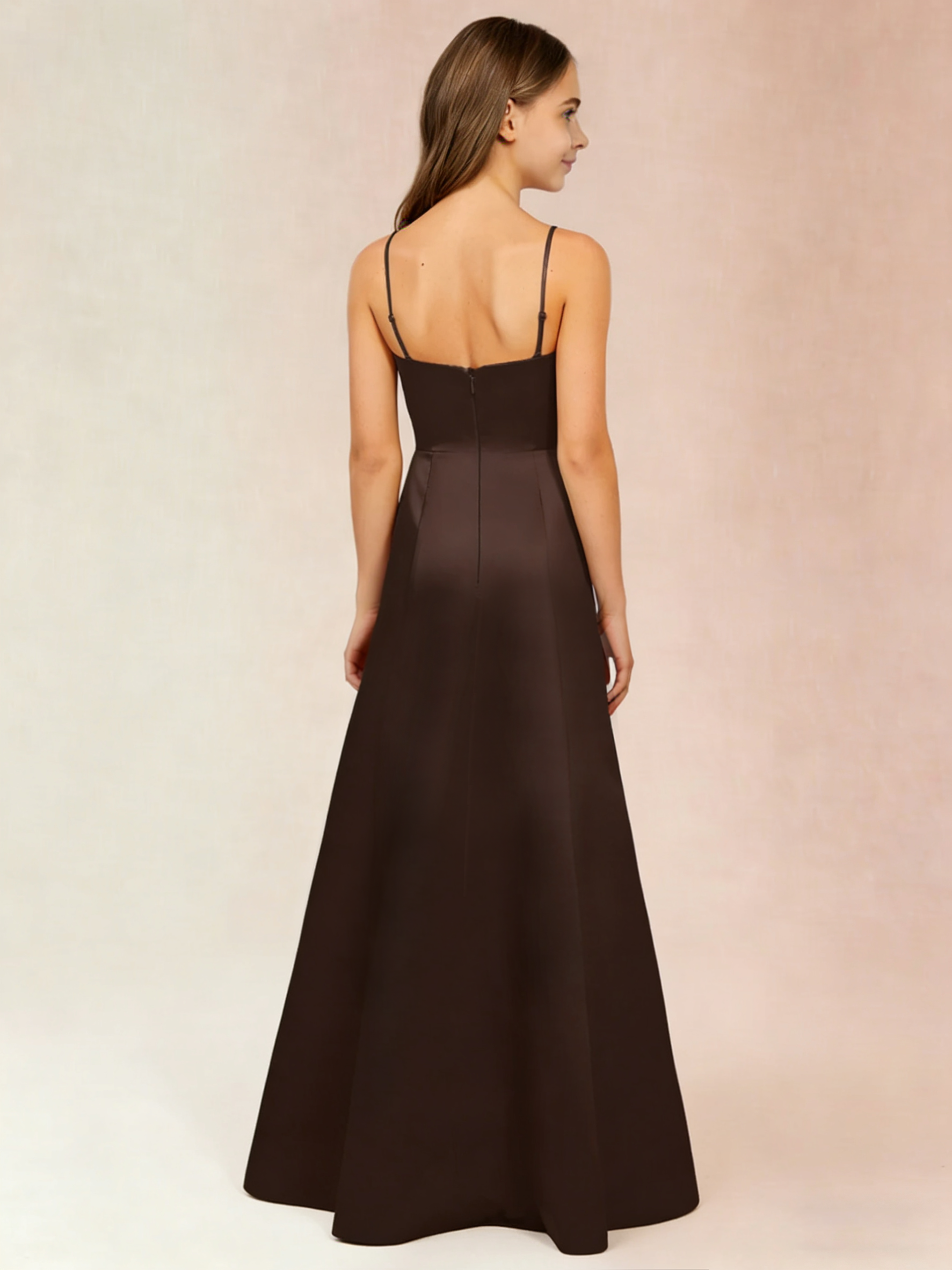 dideyttawl 2026 Girls Satin Prom Ball Gown with Big Bow Maxi Spaghetti Straps Junior Bridesmaid Flower Girl Dress 2548