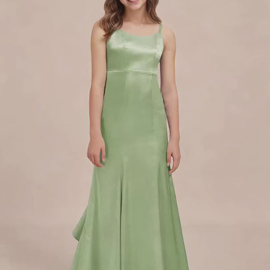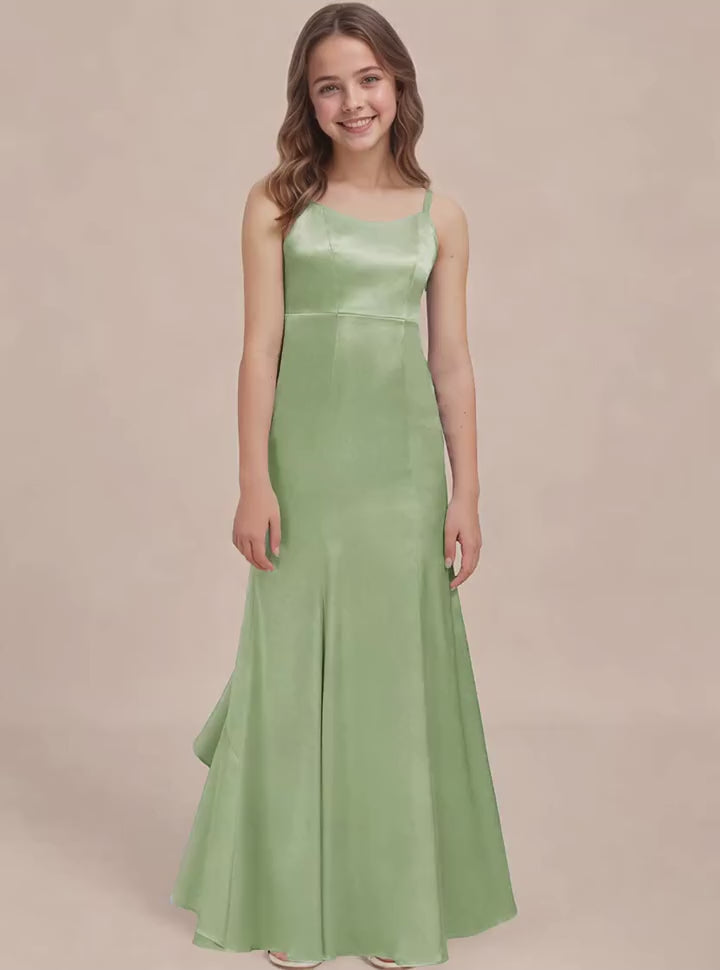 dideyttawl Mermaid Junior Bridesmaid Dress with Slit V-Neck Ruffles Bow Stretch Satin Flower Girl Dress Sleeveless Formal Special Occasion Dress for Wedding 2522