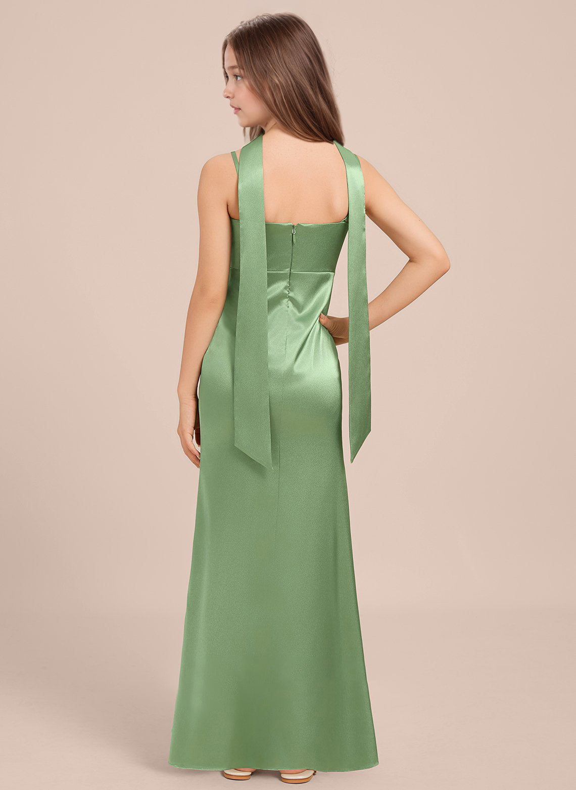 dideyttawl Satin Junior Bridesmaid Dress with Scarf for Girls 4-16 Silk Flower Girl Dress 2527