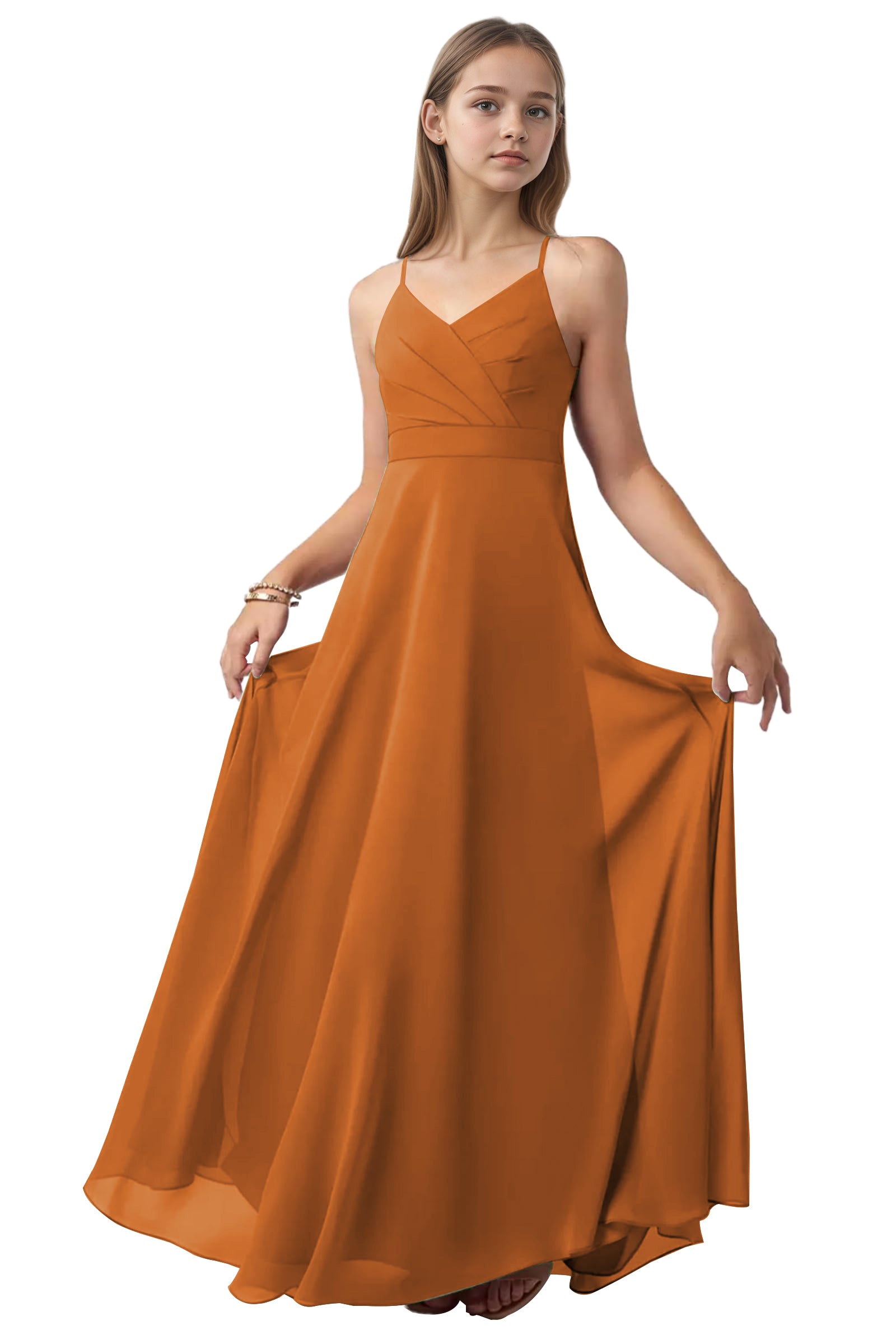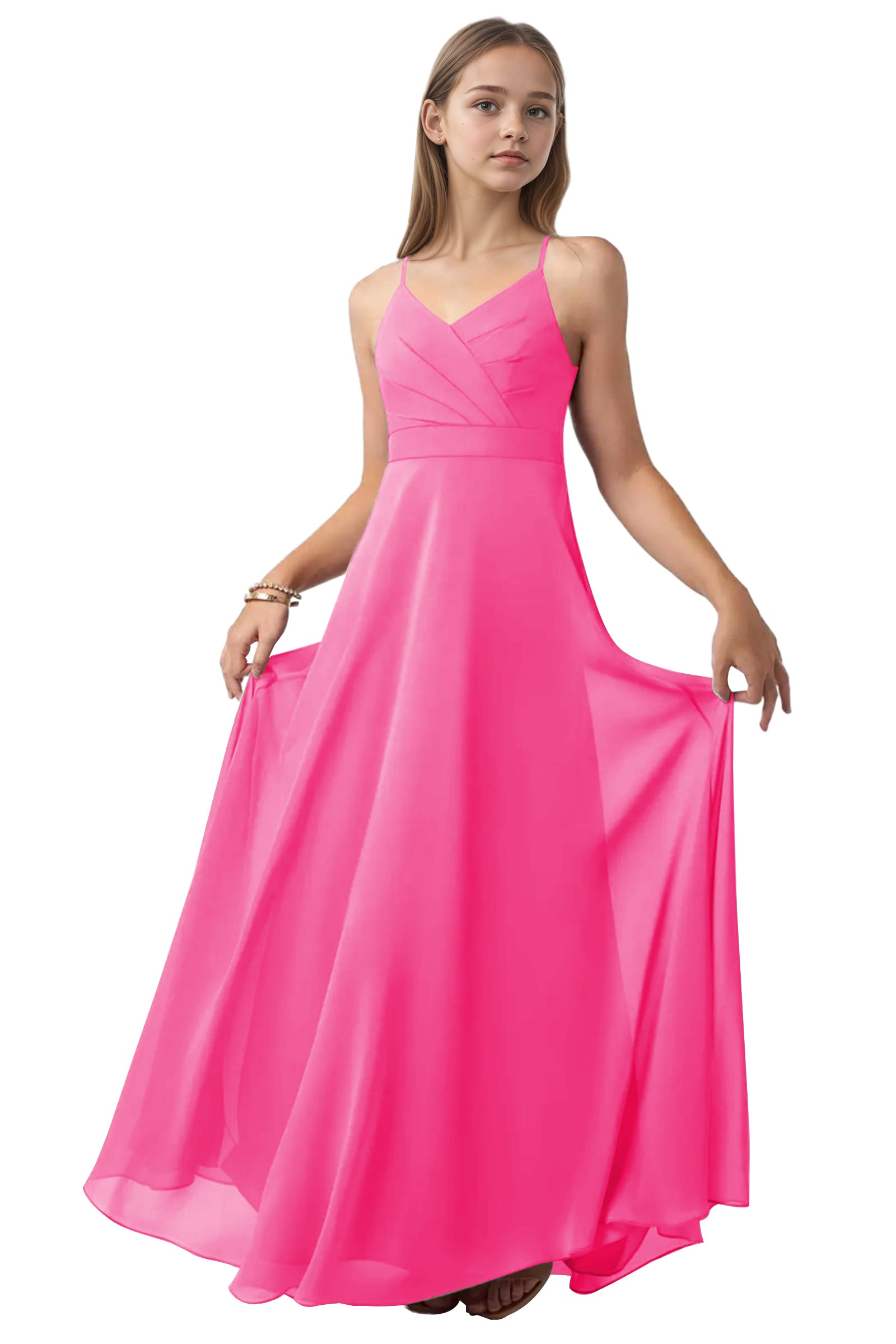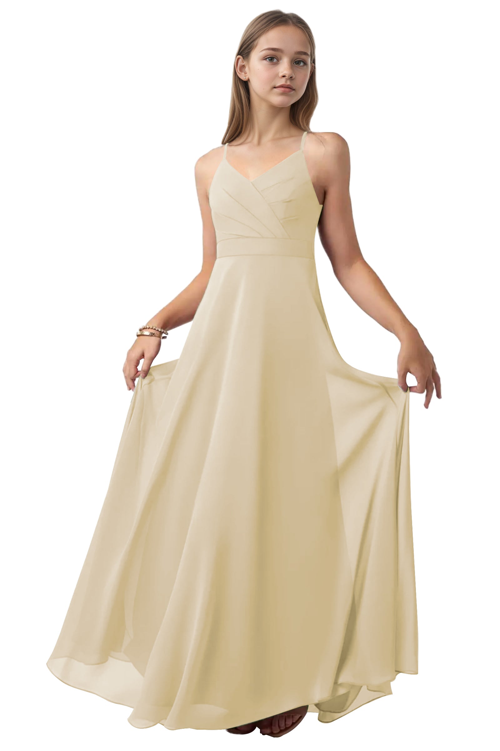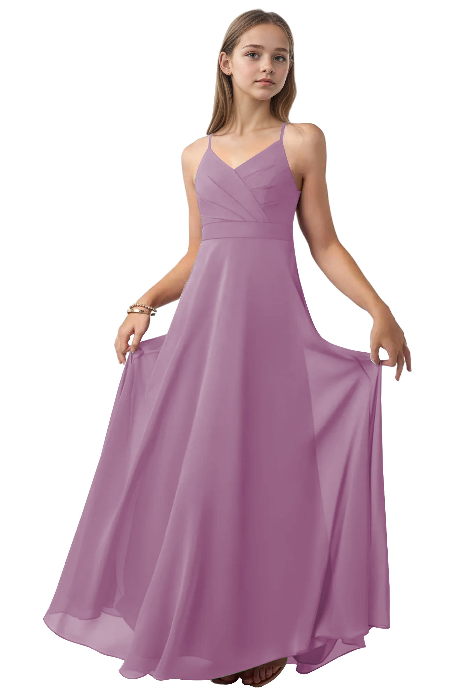 dideyttawl V-Neck Junior Bridesmaid Dress Spaghetti Straps Pleated Chiffon A-Line Flower Girl Dress 2510