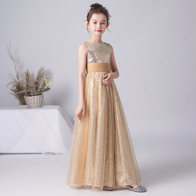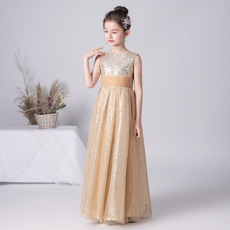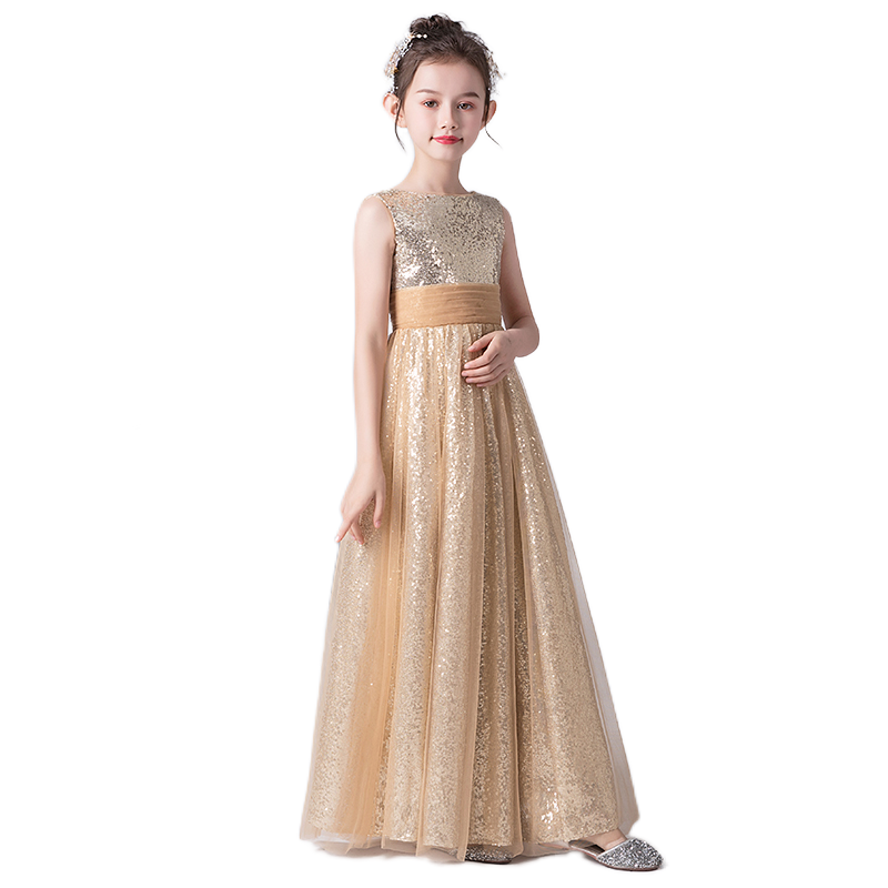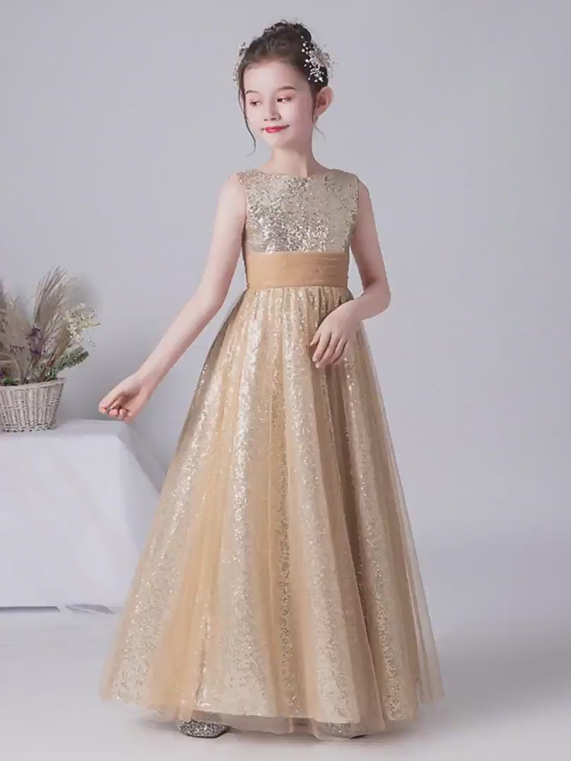 Gold Junior Bridesmaid Dress Sequin Pagaent Dresses For Teens Flower Girl Dress Sleeveless