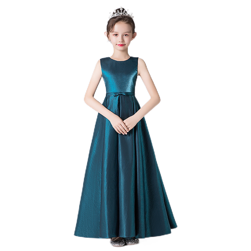 Junior Dark Blue Formal Dresses Pageant Dresses For Teen Girls Satin Evening Long Gown Sleeveless