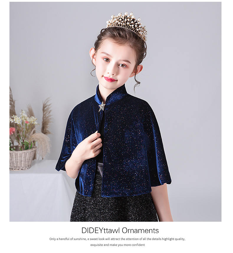 Little Girls Navy Blue Velvet Cape Princess Coat