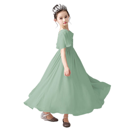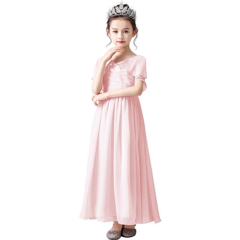 V-Neck Flower Girl Dresses Little Girl Bridesmaid Dress Chiffon Princess Party Dress Sleeveless